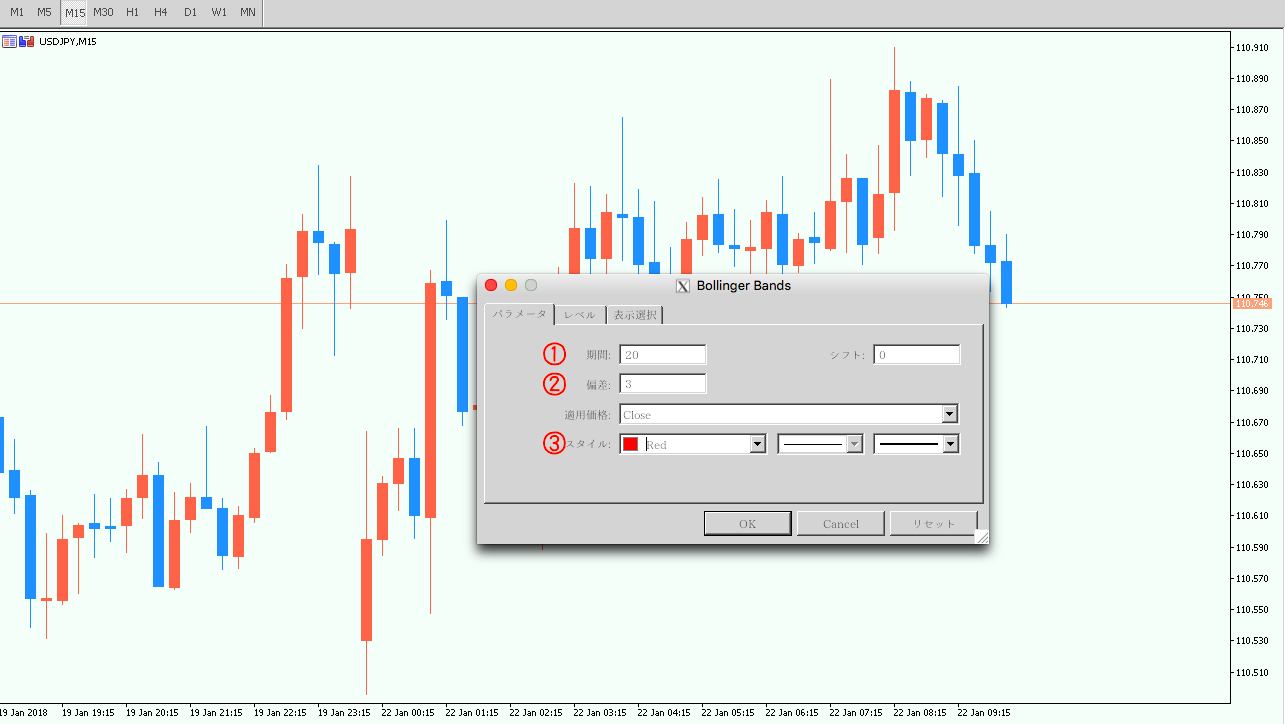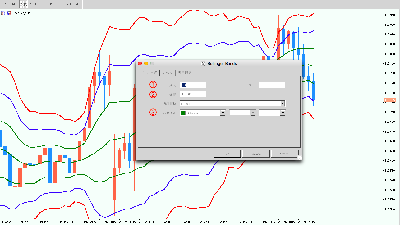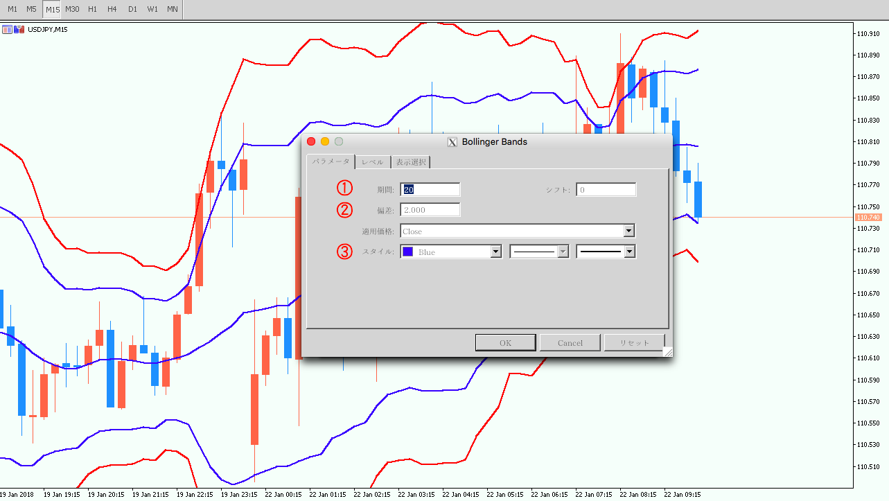 - 1ボリンジャーバンドを設定する手順その①
