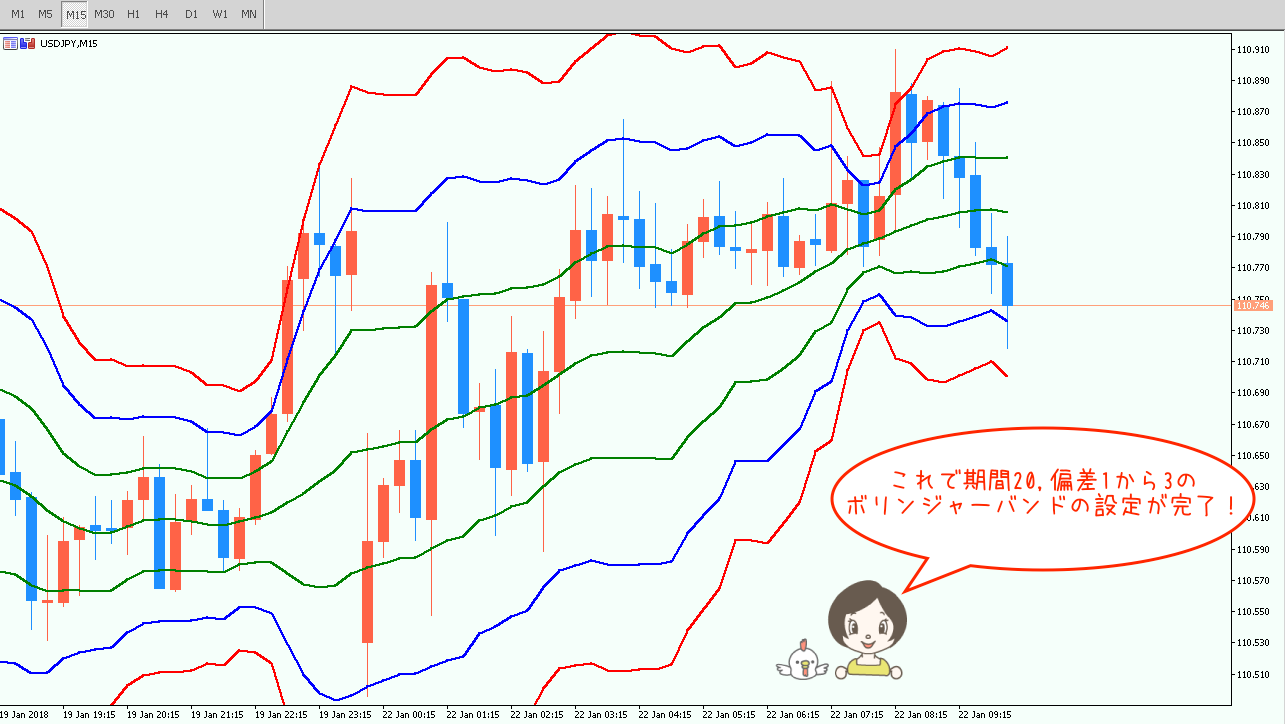 ※設定数値に関してはご自身の手法・ロジックに合わせて設定なさって下さい♪ - 5ボリンジャーバンドの設定完了!