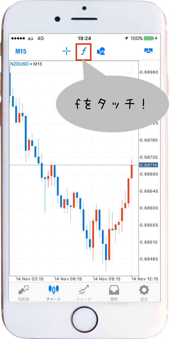 先ほどと同様にMT5のスマホアプリを起動したら画面上部の「f」をタップします^^