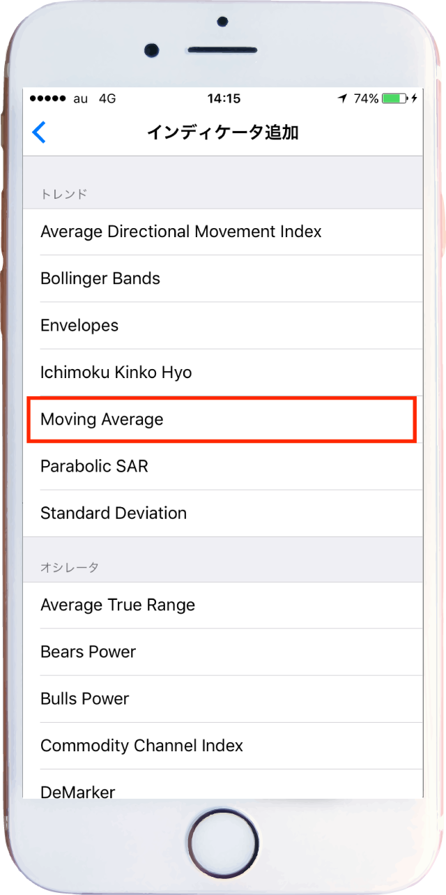 インディケータリストの中からMoving Averageを選択します^^