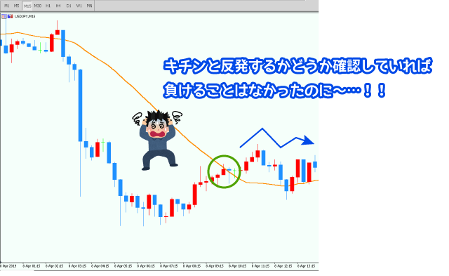 先ほどご紹介したように見切り発車の「だろう」エントリーをしてしまったり、戻しが入るまで我慢できずにトレンドの中途半端なところで仕掛けてしまったり。