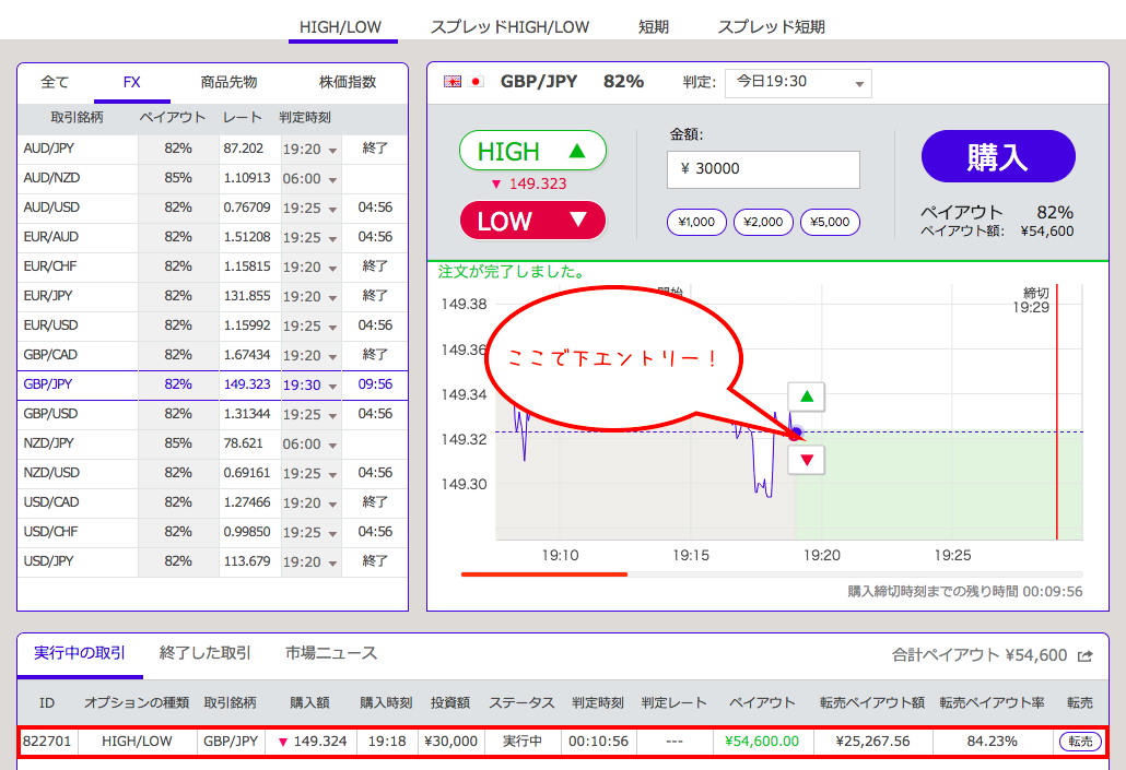 決済時間:10分取引(決済まで約11分間)