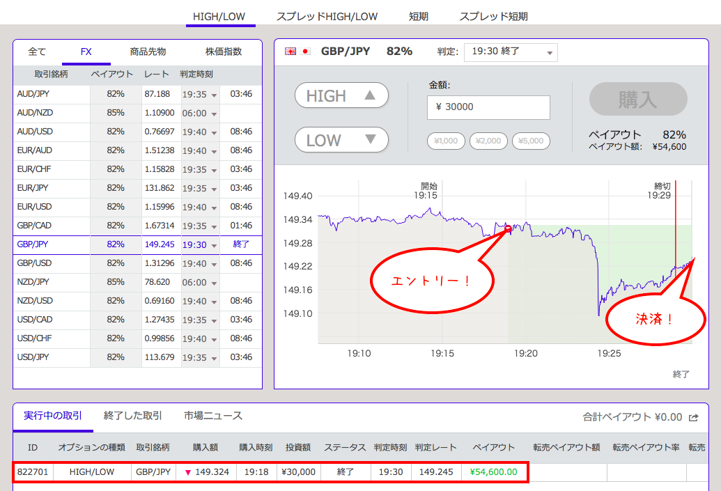 ちょっと最後の戻しが強かったですが、急激に下がってくれたおかげで快勝です♪