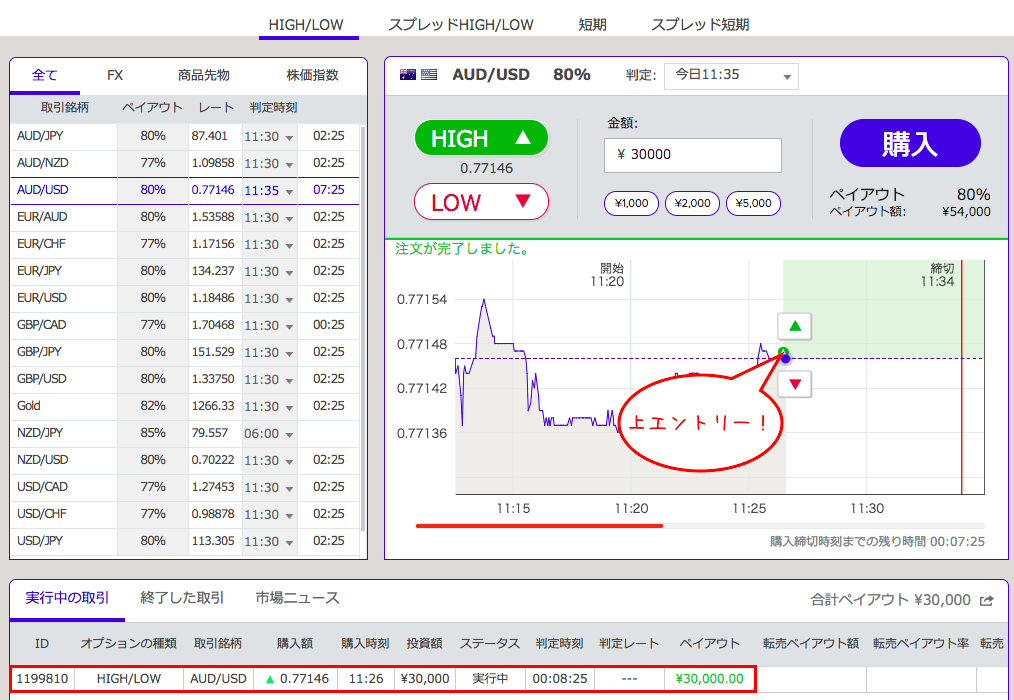 そして一息つくヒマもなく決済後すぐにエントリーチャンスがきたので、すかさず連続エントリーです(゚∀゚)❗