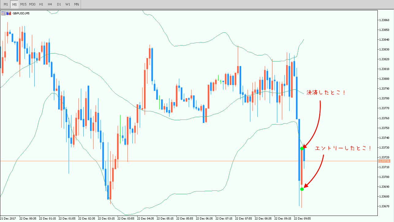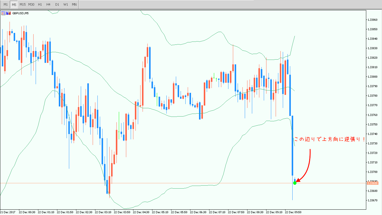 5分足も少し勢いが弱まってからの上昇!トレンドの定義もOK!