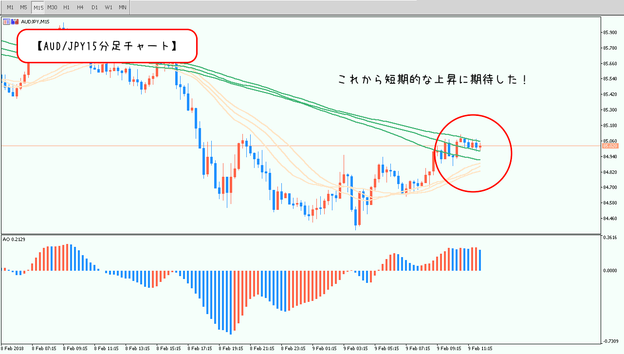 ①15分足で相場の方向性を見極めてエントリー方向を決定!