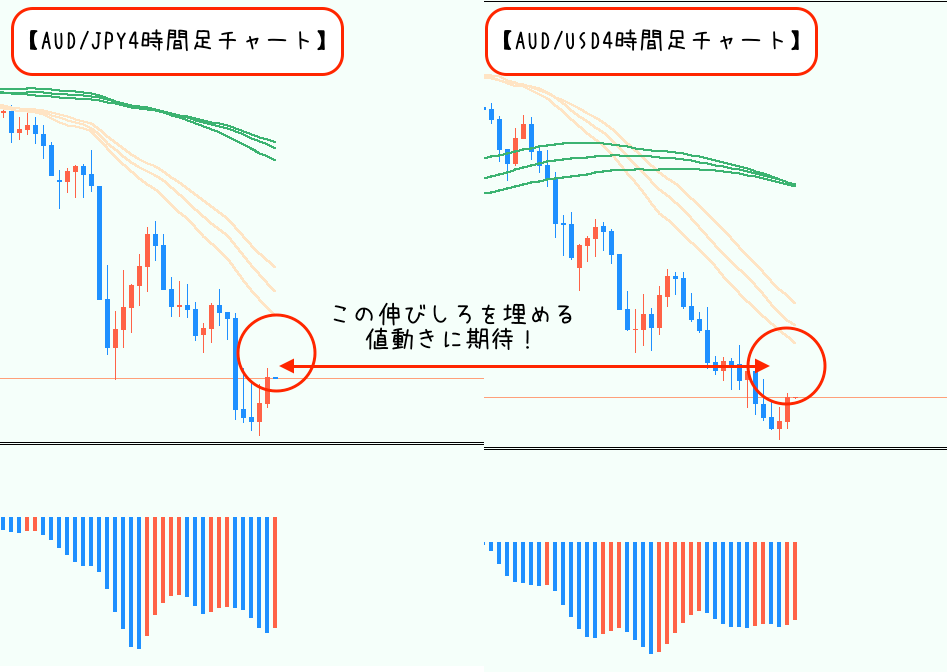 特にAUD/JPY、AUD/USDあたりは中長期で見ると流れは下方向なものの、展開次第では短期で上昇への勢いに期待が持てそうです(゚∀゚)!