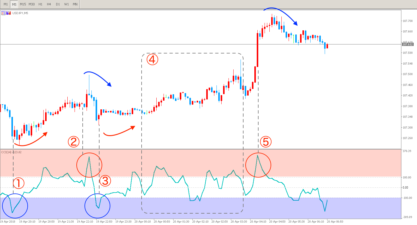 ②CCIのシグナルは相場が反転して流れが変わったのを確認してから使う!
