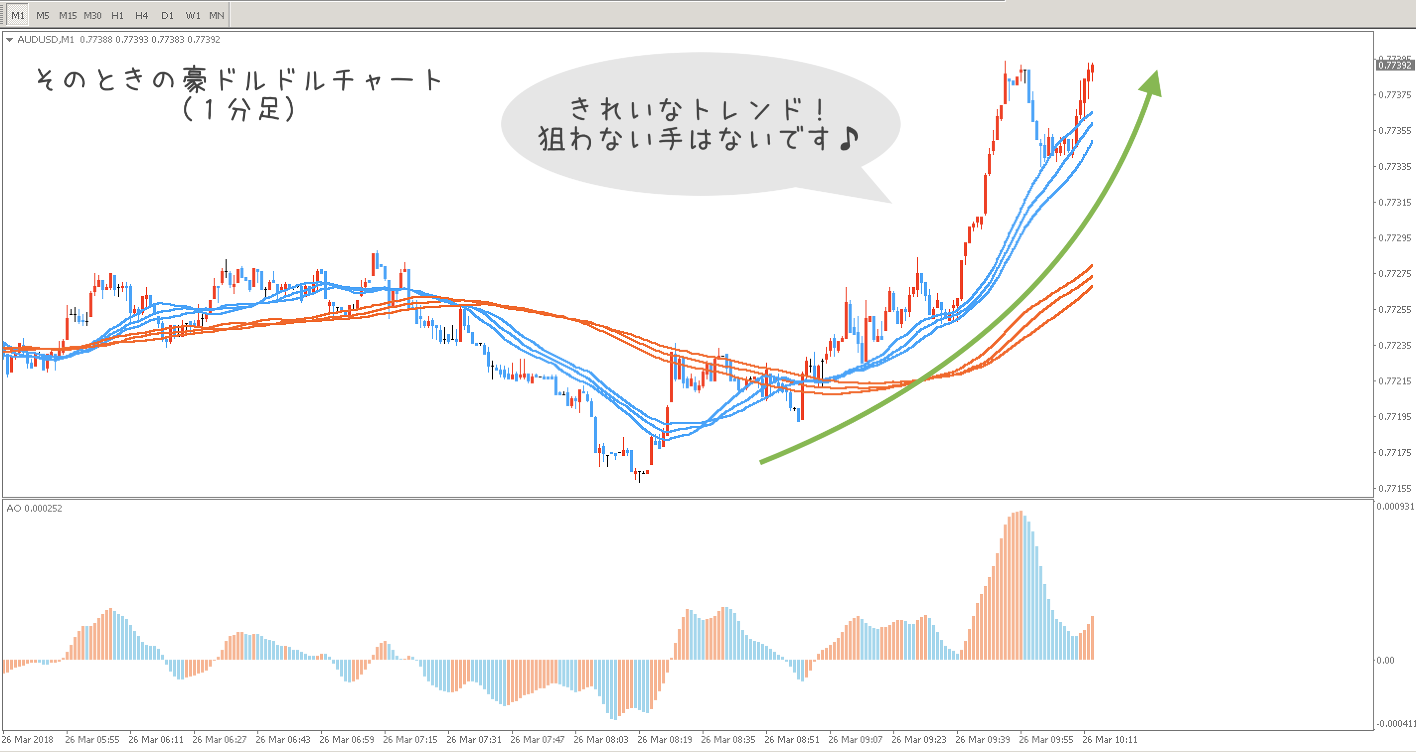 というか、きょうの相場トレンドが綺麗すぎる。