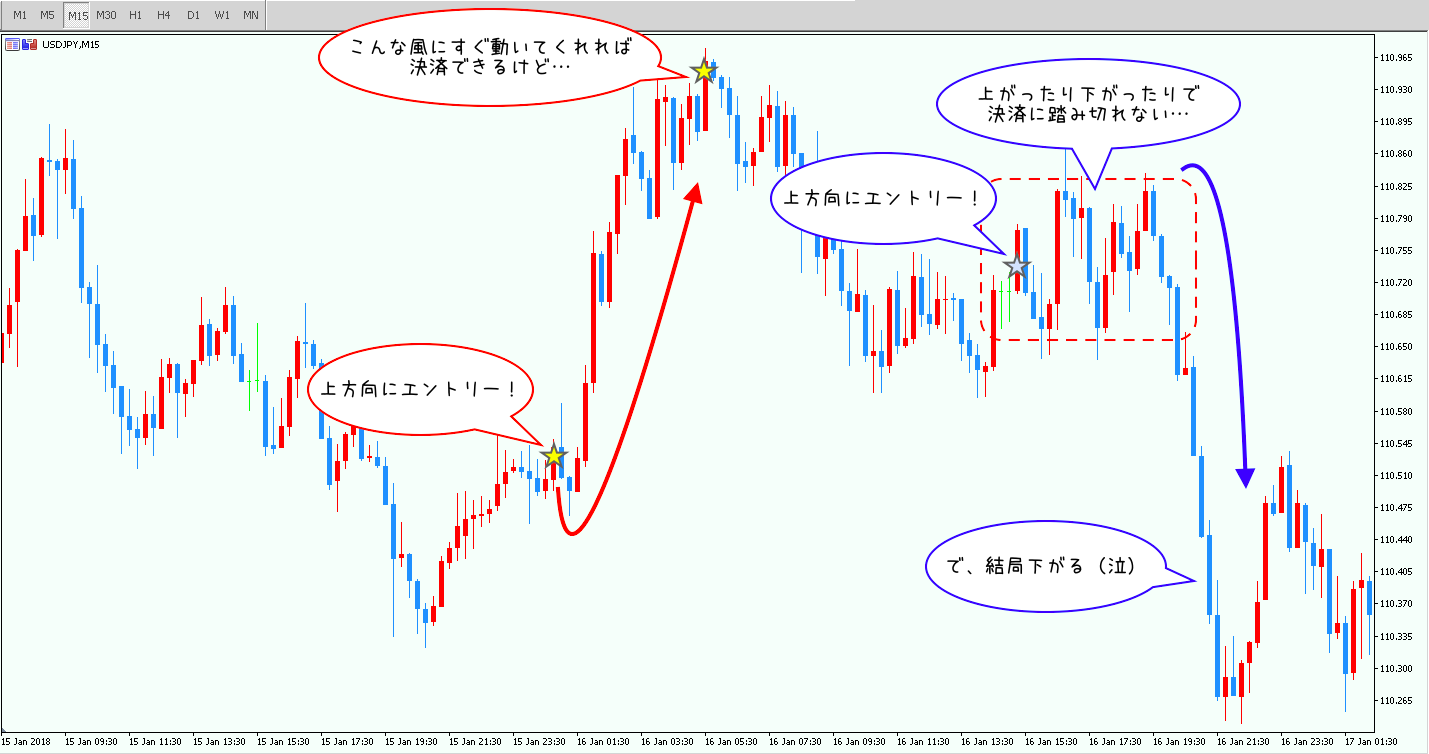 なので「どこでエントリーするか」だけでなく、「どこで決済するか」までをしっかりと考える必要があるんですよね(^_^)