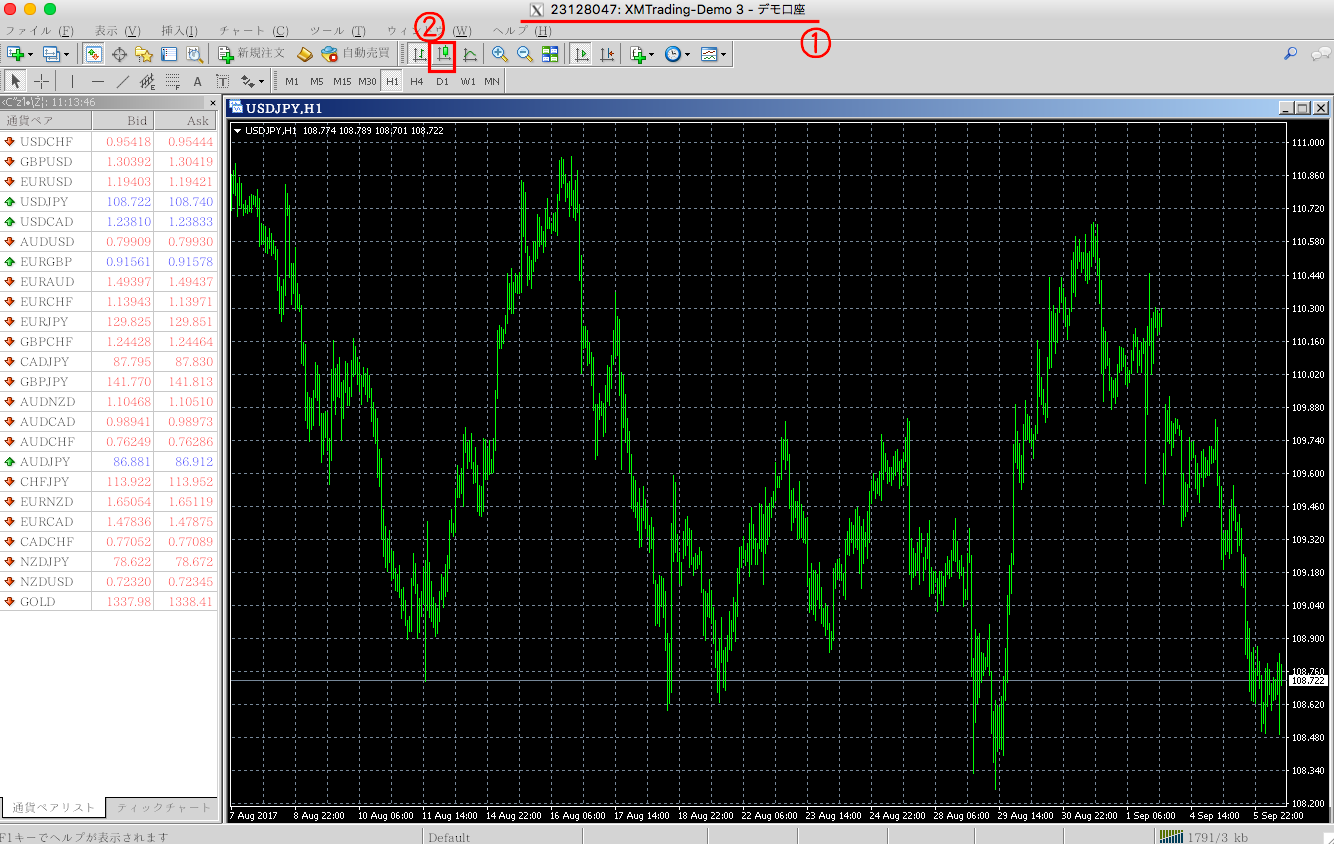 - ①デモ口座にログインができているか再確認!