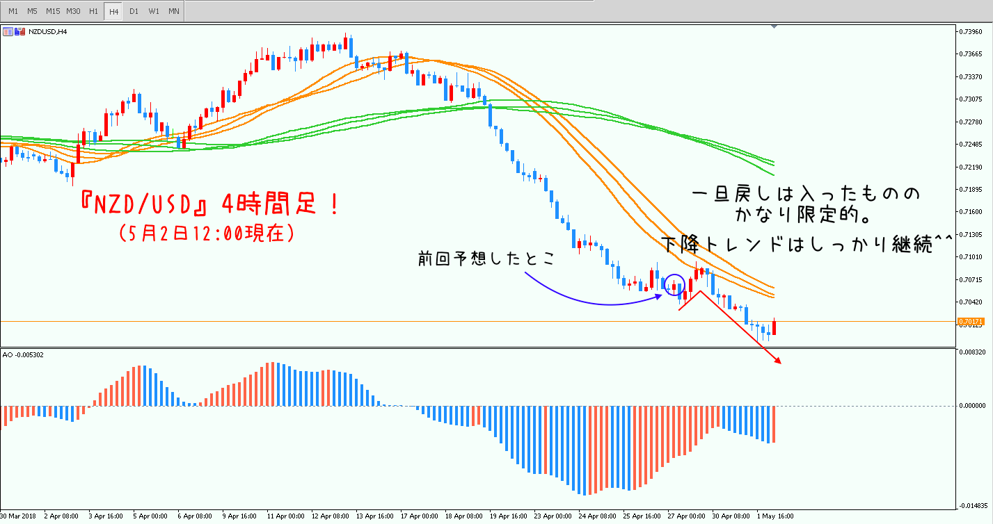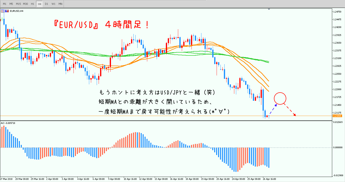 - もし長期MAを下抜けてしまったらしばらく監視の必要はなさそう^^(1時間足or4時間足が再度上昇するまでは)