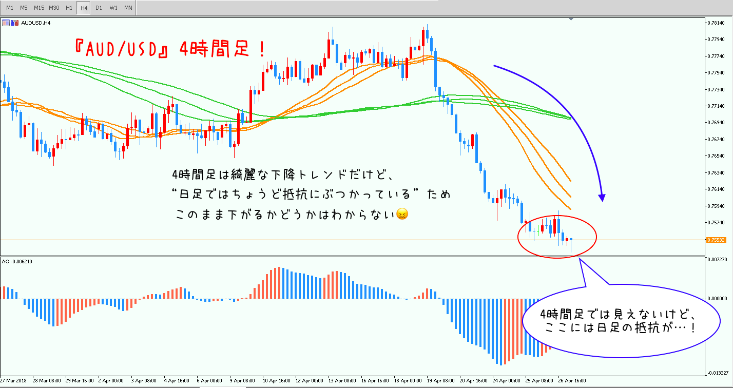上位足を確認することでさらにエントリーを後押しする材料を見つけることができたり、逆にエントリーすることに対するリスクを見つけたりすることもあります^^