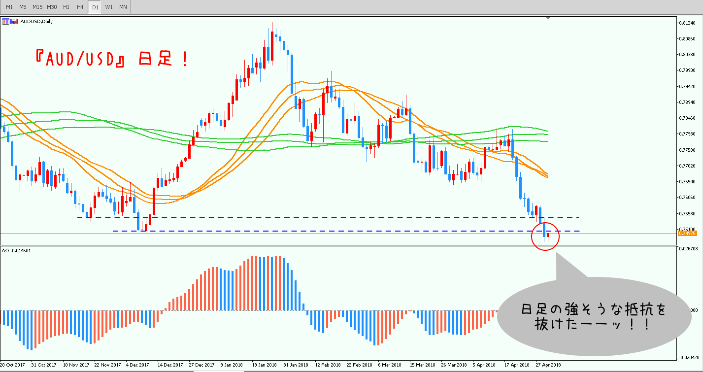 何より“抵抗になる可能性のあった前回安値”を難なく突破しているのは下方向への強い後押し材料になりますね😁