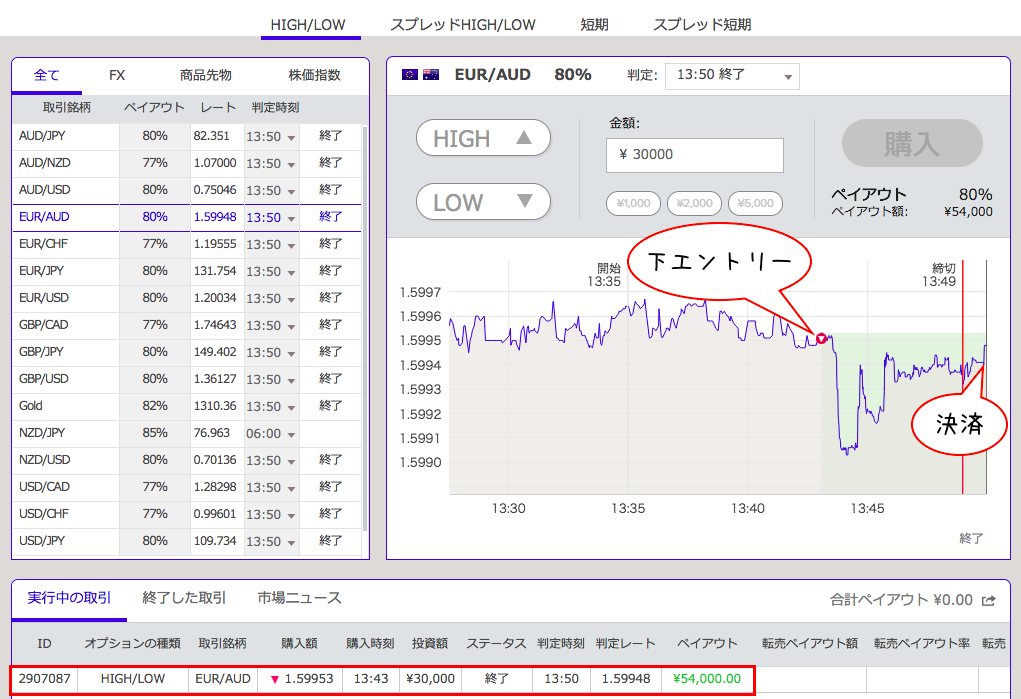 でもこういった動きでも結果的に上下の予想が当たっていれば一定の利益を獲得できるのがバイナリーオプションの強みですね^^