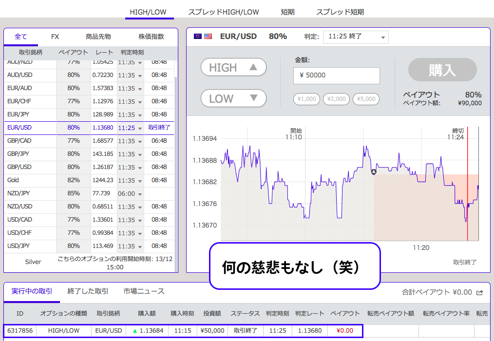 私の取引金額の場合、たったそれだけのミスで50,000円の損失を出してしまったわけです。
