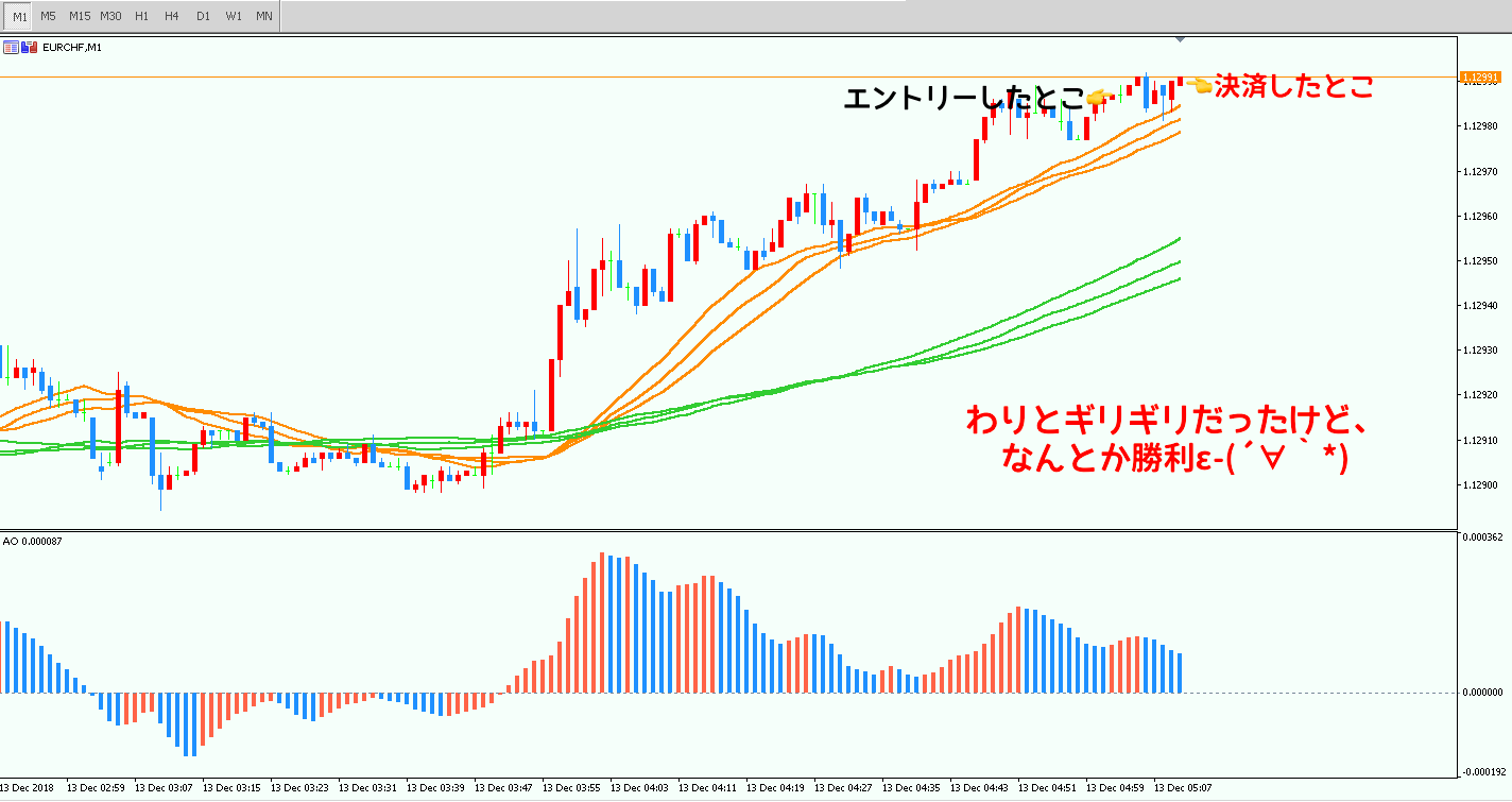 そのために最も小さい1分足でできるだけ詳細なタイミングを図っていくというわけです(*´∀`*)