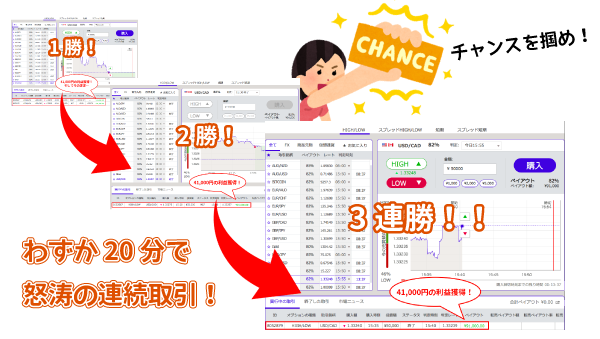 本日の取引はなんと“わずか20分で3連勝”(*゚∀゚)