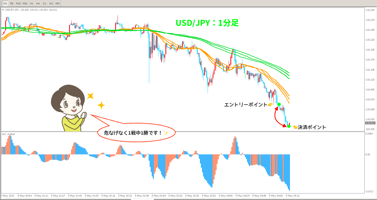1分足でも同様に下降トレンドが形成されており、なお且つ勢いもあるのでタイミングを計ってエントリー!😆