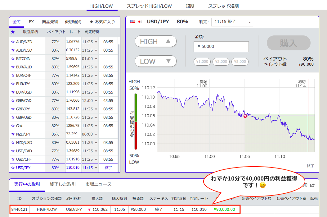 - 取引種別:High&Low