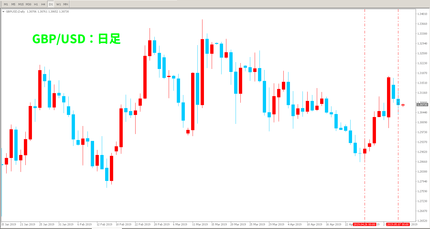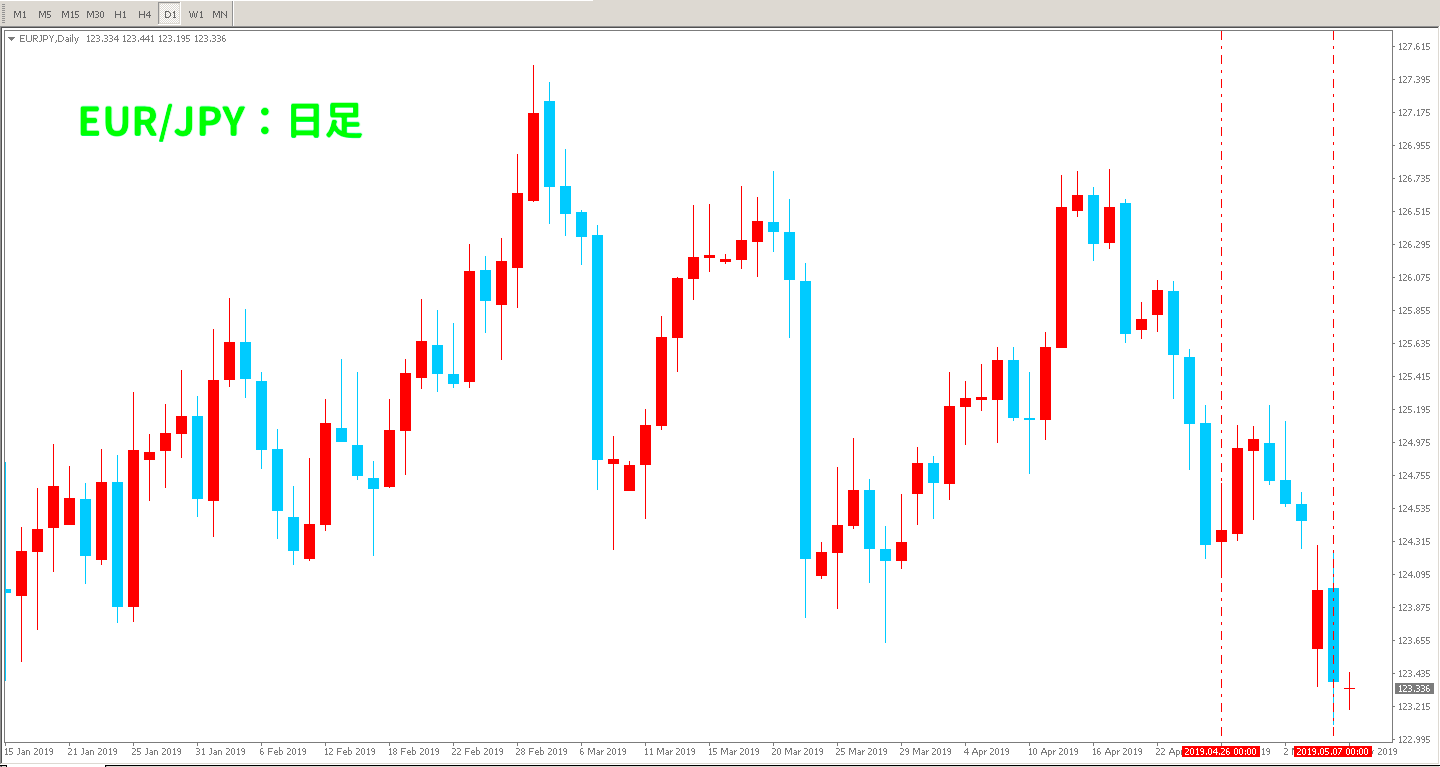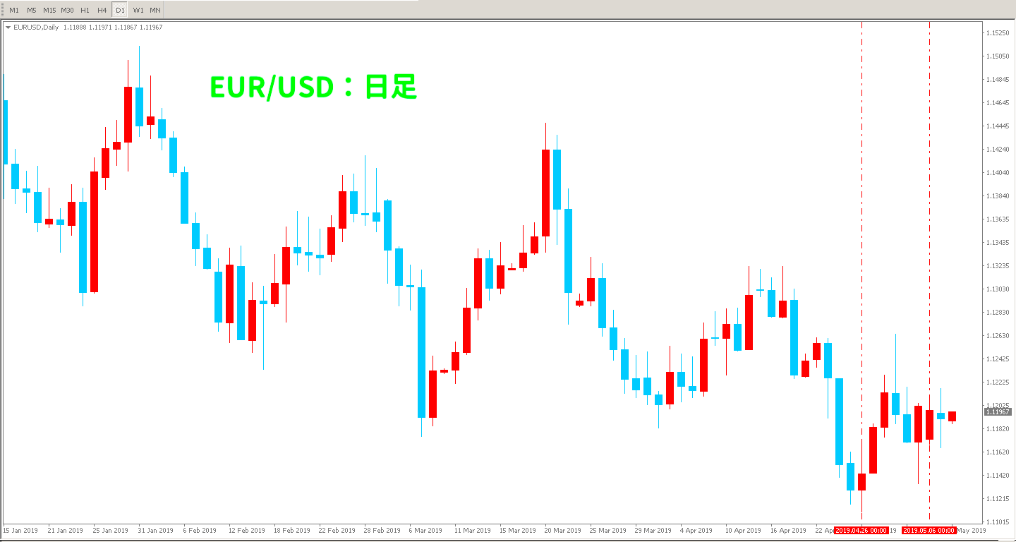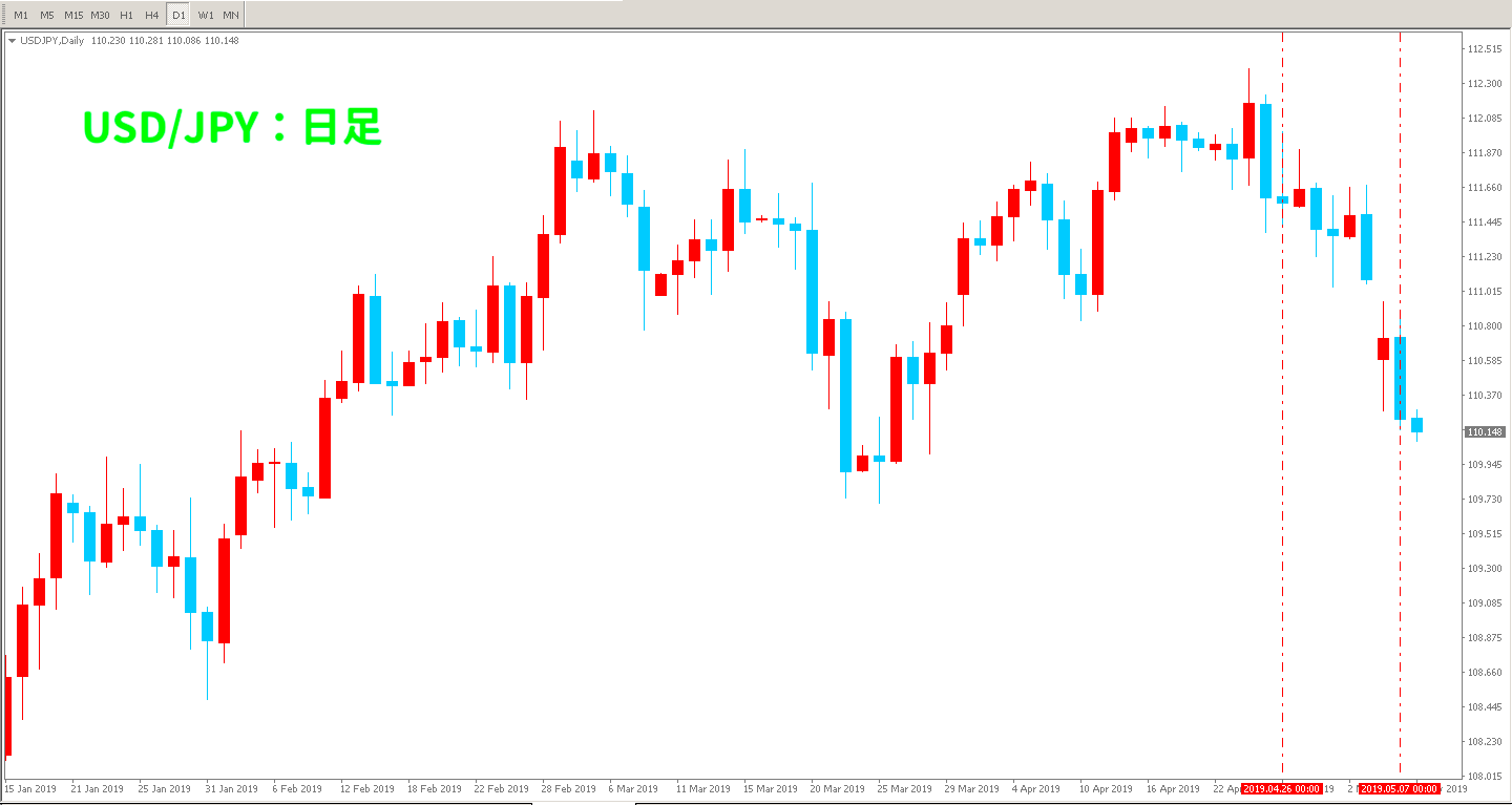 ただ、相場全体を見渡すとレンジ相場の様になっていますし、日本の10連休が関係しているとは言えないかも知れません💡