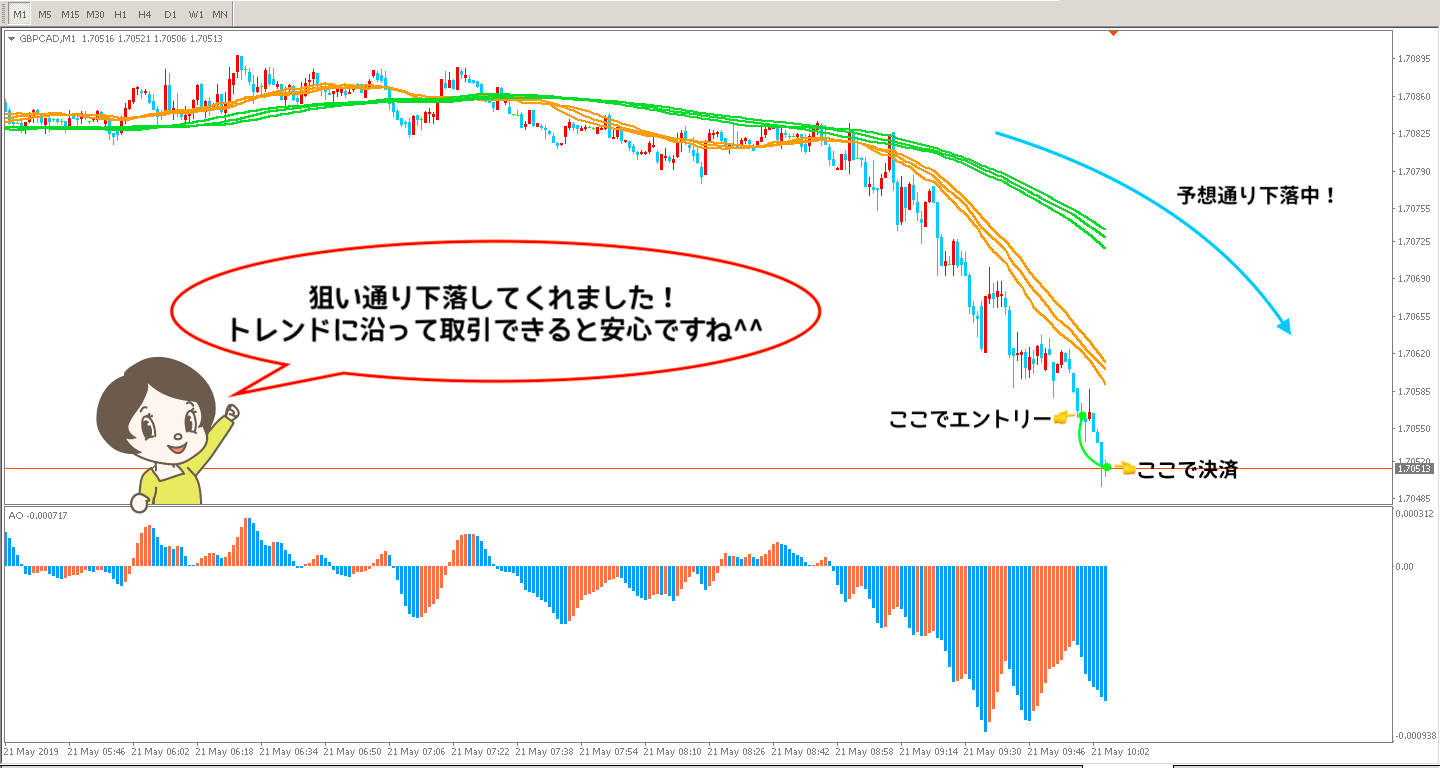 今回は5分足を確認したことで、より勢いが強い下降トレンドということが分かりましたね^^