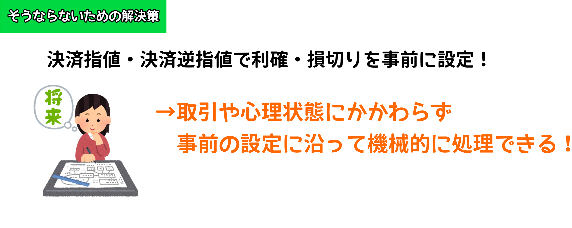 指値・逆指値注文メリット②心理的な迷いに関係なく“機械的”に決済ができる!