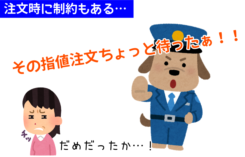 - 注文設定の手間や価格指定時の制約などがある