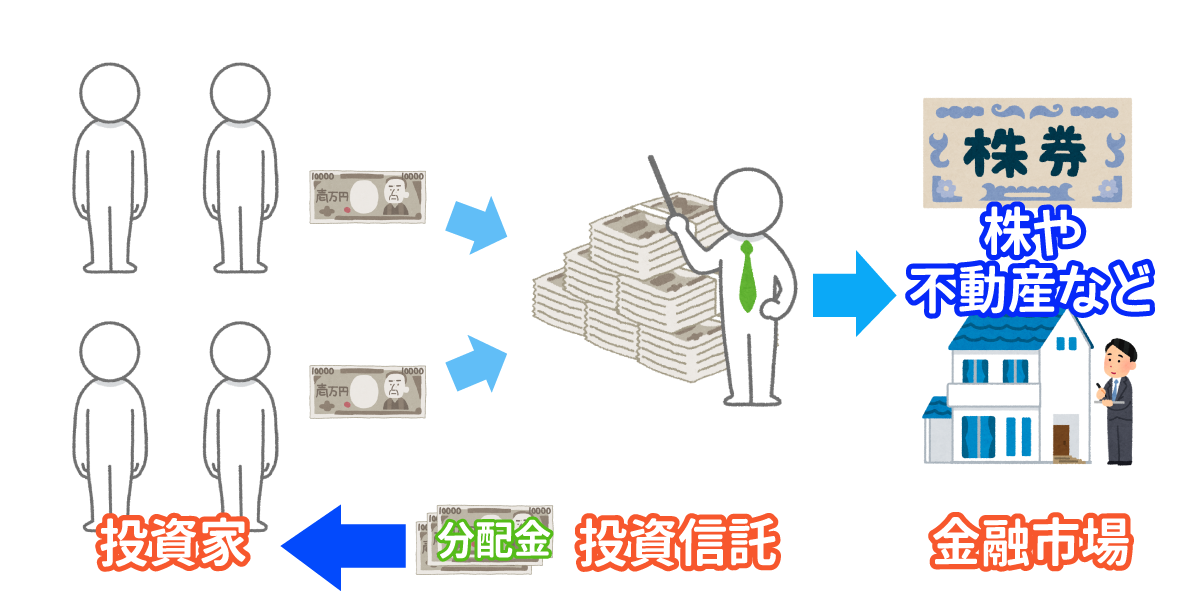 投資信託は預けたお金が銀行に貯金しているよりも高金利で増えていくといったイメージを持つとわかりやすいかもしれません。