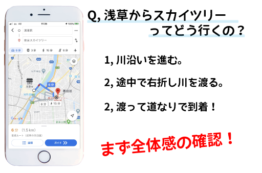Googleマップなんかでルート検索を使ったことがあるとわかりやすいのですが、行き先が知りたくでルート検索する時って最初は現在地からルート全体を確認して、それからより細かいルートを確認しますよね?