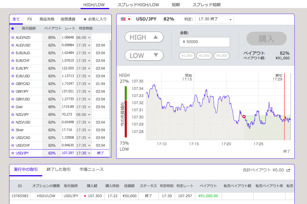 ただ短すぎる取引時間ではちょっとした値動きで負けになってしまうので、トレンド方向に価格が進む猶予をもたせるためにも10分程度の取引時間にすることをおすすめします✨