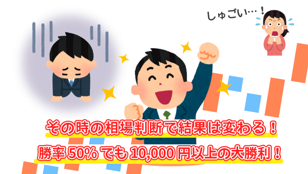 それをあーだこーだとこねくり回すよりも、変化し続ける相場をしっかりと見渡し、場合によっては転売を意識した立ち回りをすることで、今回のように勝率50%でも1万円以上の利益を生み出すことだって可能になります(*^^*)