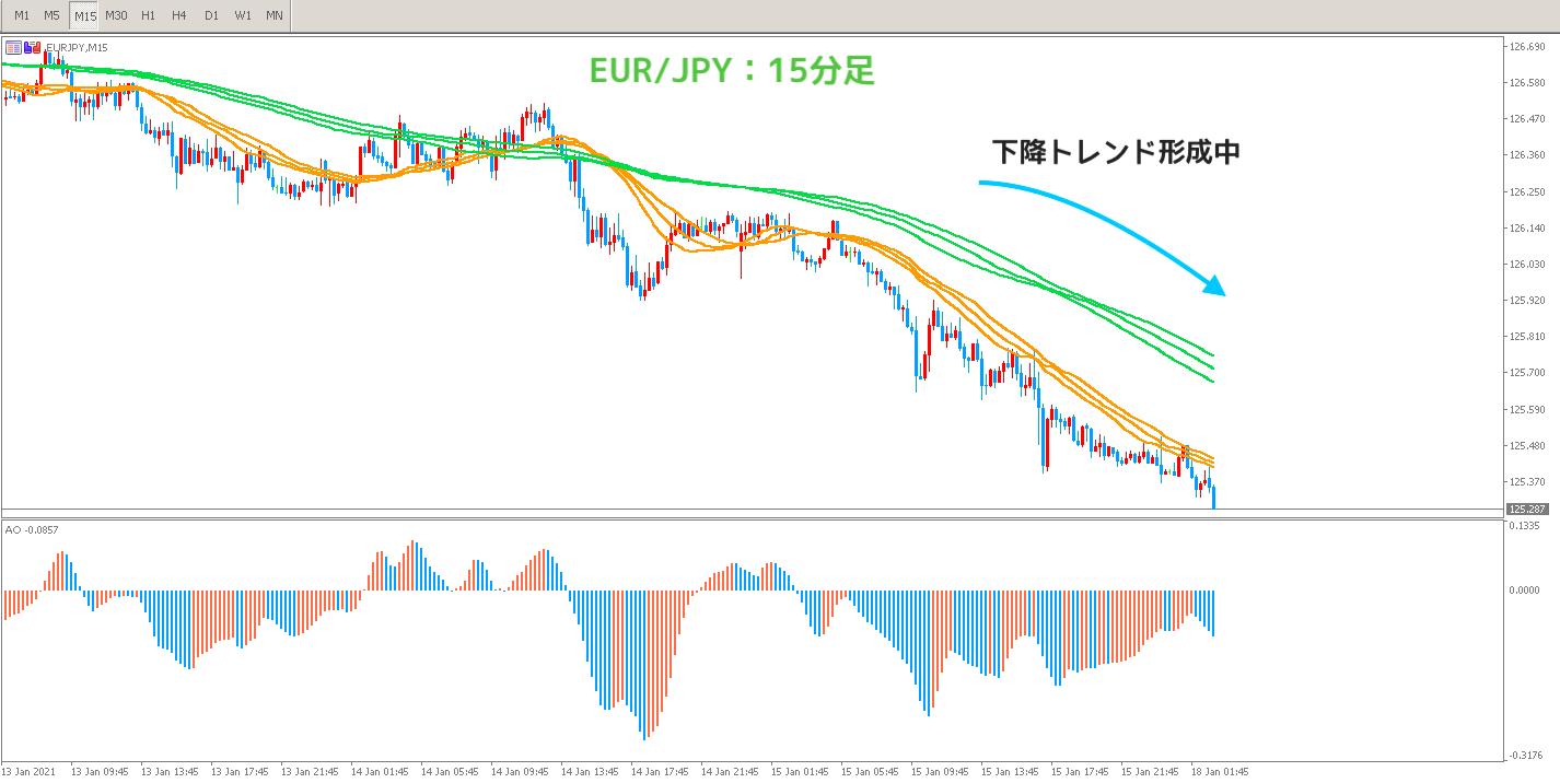15分足で相場の進む方向性=エントリー方向の確認