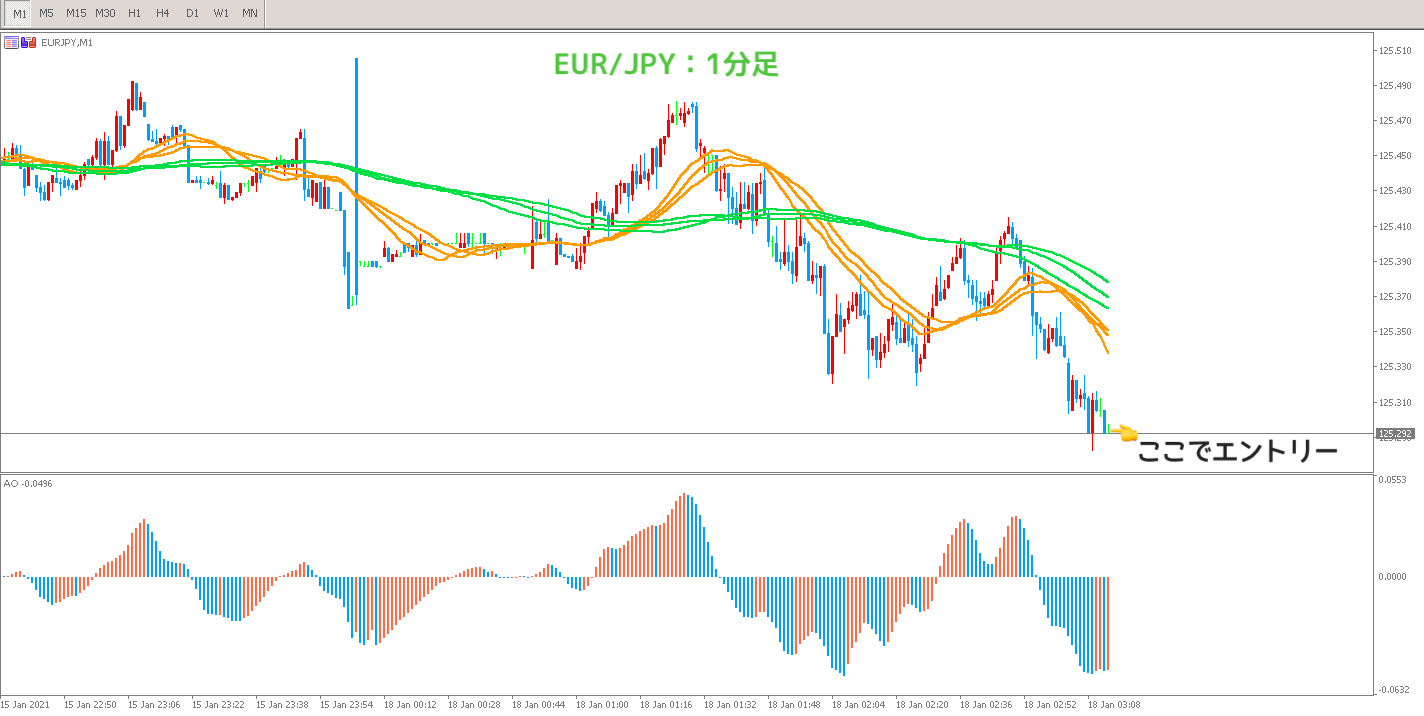 1分足でエントリータイミングを図る