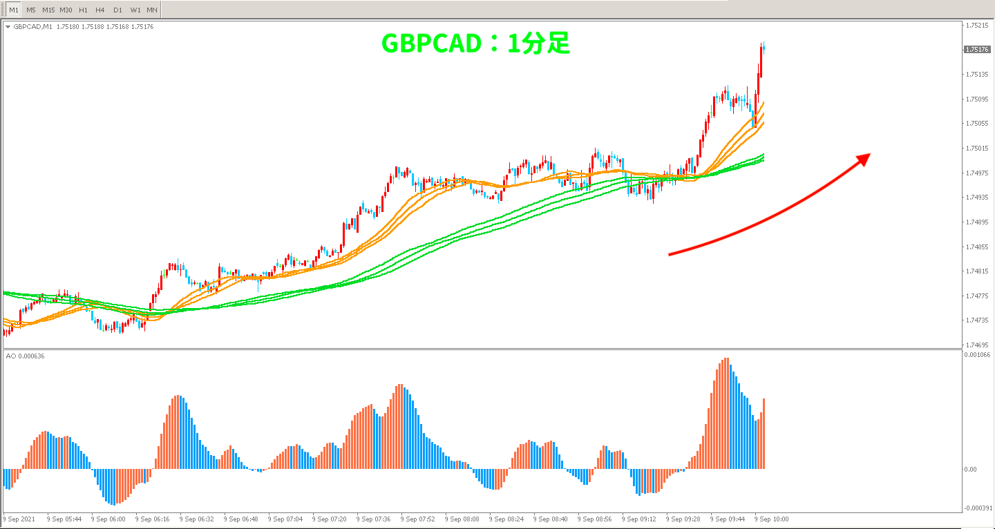 1分足は細かい値動きが見れるので、タイミングを図るという点においてとても優秀な時間足です😊