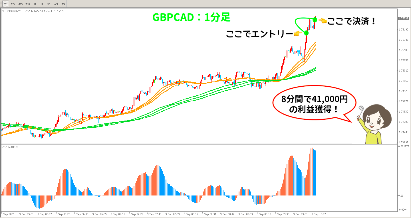 1分足で見ても勢いがとても強く、まさに今がチャンスといった状態です😁