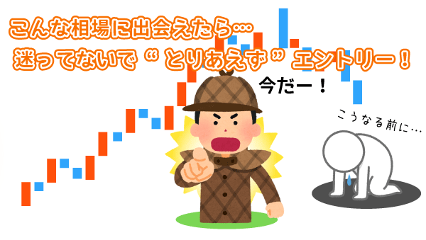 今回の記事ではこんな相場に巡り会えたらとりあえずエントリーしちゃえ!