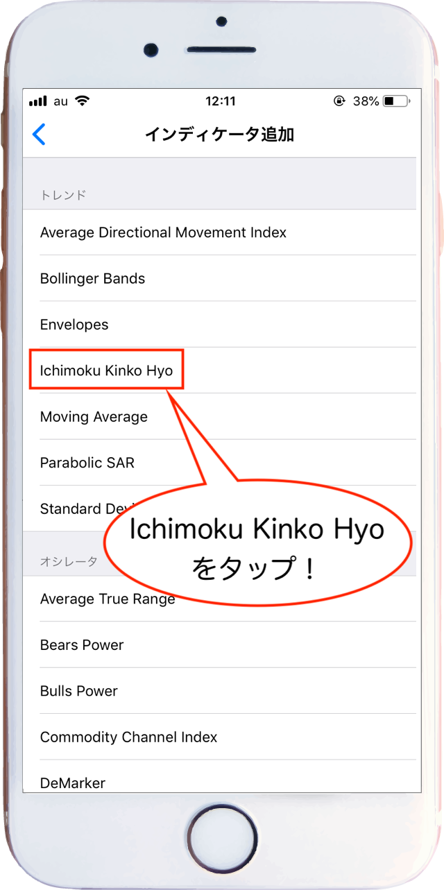 3トレンド系にある「Ichimoku Kinko Hyo」をタップします^^