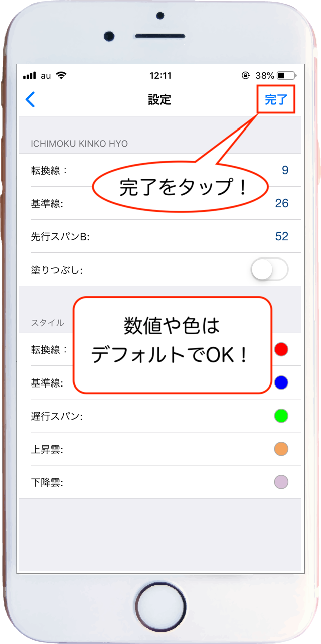 簡単すぎてもう終わり?と思われたかもしれませんが、これで正しくスマホ版MT5アプリに一目均衡表を表示させることができました🎶